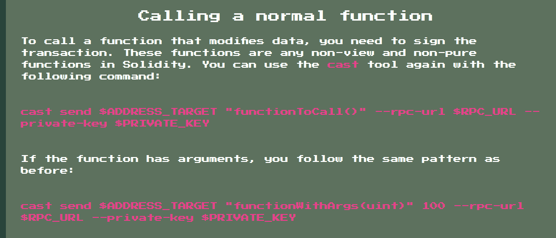 The Documentation provides the needed information how to make some calls with cast